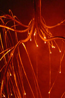 The Casuarina chandelier is based on the cascading foliage of the native Casuarina tree of Australia. Sydney based technology company Aarnet installed a Casuarina chandelier in the foyer of their new premises in North Ryde, Sydney. The fitting is connected to a colour wheel to create spectacular colour changes through red, orange and white.