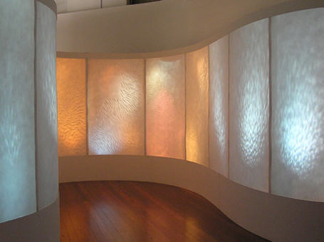 Coralscapes was an experiential lighting installation at Object gallery in August 2005 funded by an Australia Council for the Arts grant. The installation consisted of embossed textile screens with back lighting which changed intensity and colour to reflect the different levels of light seen on the reef. The installation was designed to enclosed the viewer and create the sense of immersion in the experience.